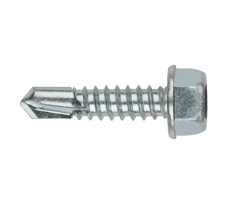 Отличительной особенностью данного метиза с шестигранной головкой и пресс-шайбой является удлиненное сверло с частой резьбой. Такой тип конструкции позволяет избежать предварительного этапа сверления отверстий.