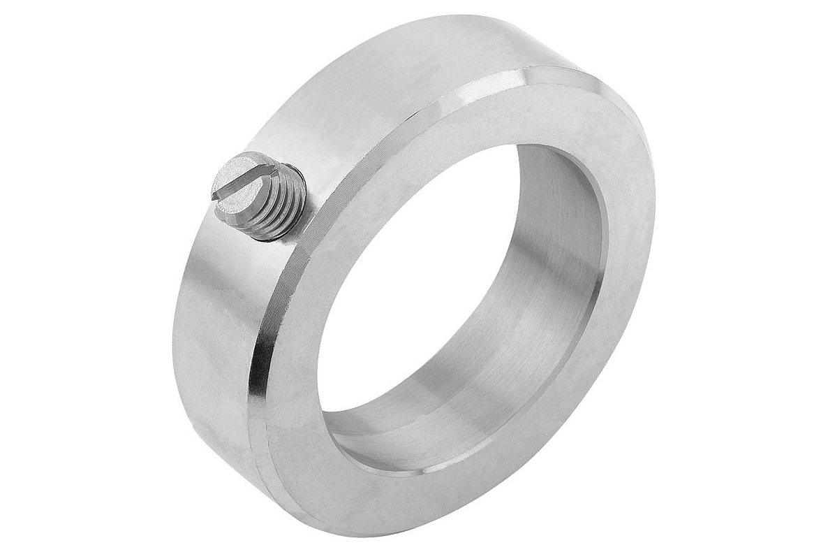 Применят, данные метизы в машиностроении, приборостроении для основного либо дополнительного крепления деталей на валах. Использование данных колец облегчает сборку-разборку узлов механизмов и агрегатов, а также упрощает изготовление самих валов, в которых не нужно делать дополнительные проточки, ступени и резьбы для фиксирующих элементов типа стопорные кольца и шлицевые гайки.